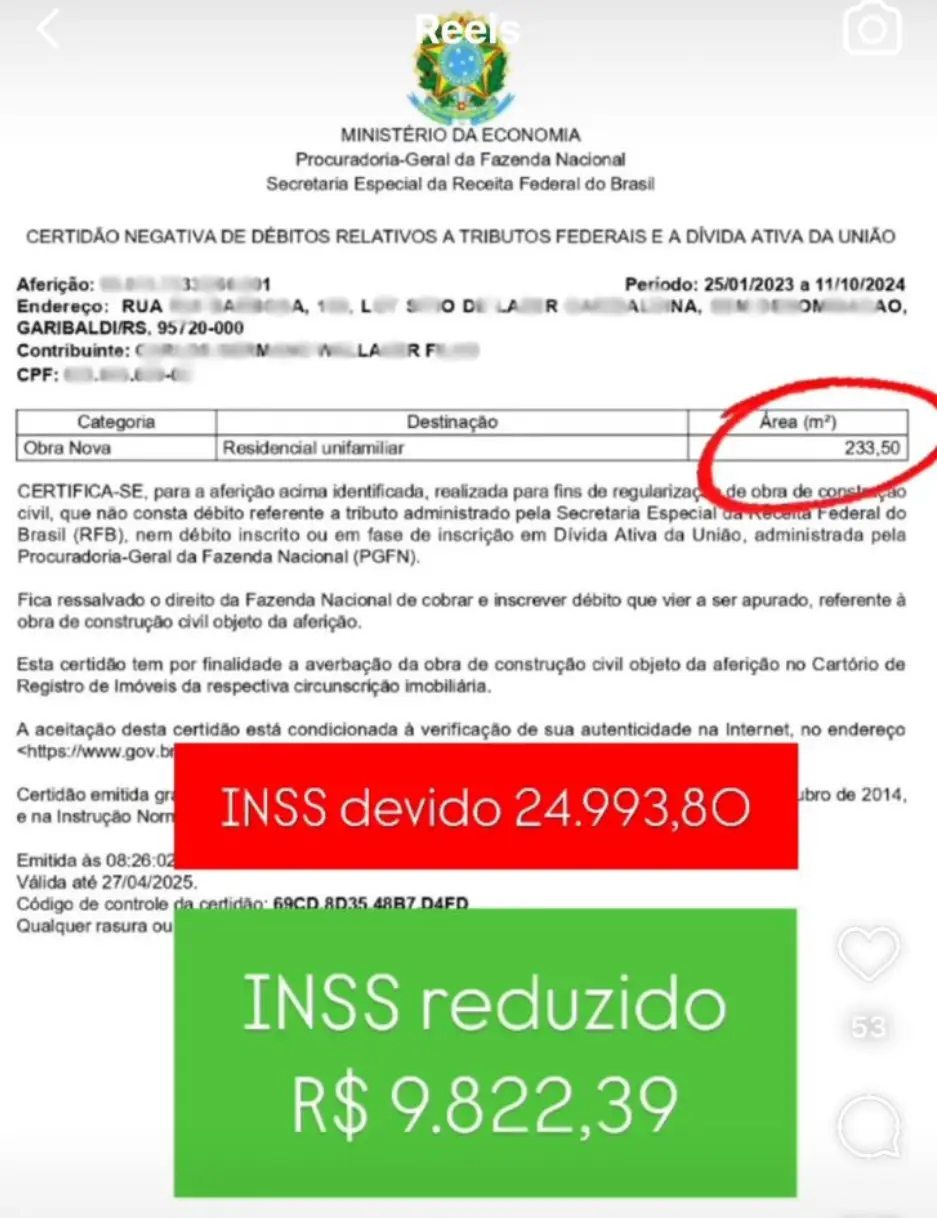 Essa metodologia é essencial para reduzir a carga tributária, facilitar a emissão da Certidão Negativa de Débito (CND) e gerar uma economia significativa no processo de regularização da construção.